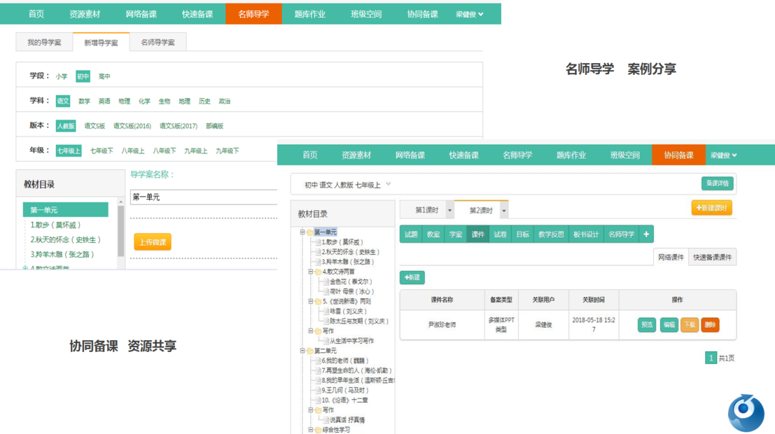 備課系統主要由在線備課,在線授課,素材管理,權限管理,教案分類等系統構成,可以幫助教師提高工作效率,極為方便的對備課的有關數據進行管理、輸入、輸出、查找等操作,使信息數據能夠具體化、直觀化、合理化的平臺。有助于實現教育資源的共享與優化,促進教師在業務領域的溝通與探討,提高教師教學水平,構建高效課堂,提高教學質量。