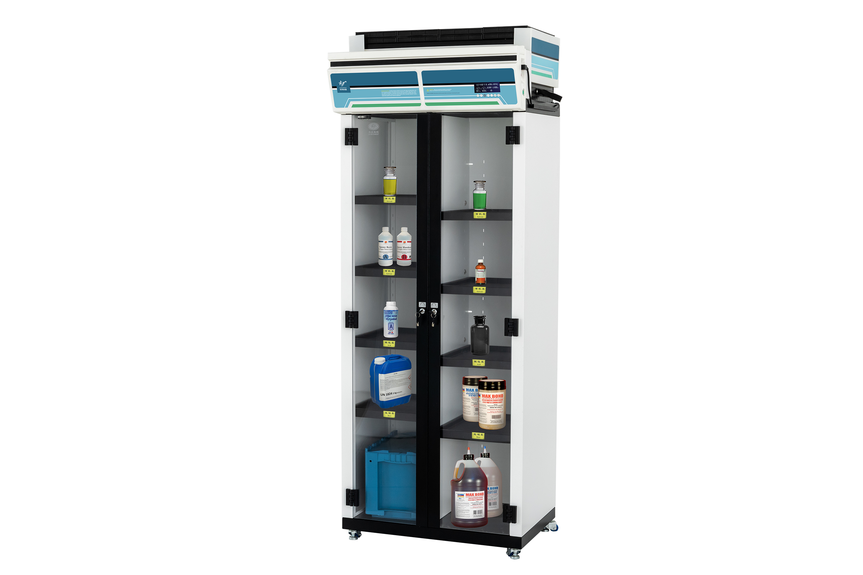 產品詳細介紹基本參數 尺寸(mm): 內:796*470*1752 外:800*525*1960-2362 空氣處理量:240m3/h 柜內體積:0.61m3 儲存容量:160瓶(每瓶500ml) 盛水盤:15L *層板承重:50kg 空氣交換率:390times/hour 總功率:30watt 電流:1.2A 音量:≤50dba 電壓/頻率:220V/50Hz 材質: 柜體:1.2mm鍍鋅鋼板,涂有抗酸堿的環氧樹脂涂層,承重部件采用3.0mm加厚鍍鋅鋼 門體:鋁合金嵌5mm高品質透明亞克力,內設暗藏式永磁磁體 鹽酸盒:PP材質儲存強酸(400*300*285mm) 鹽酸盒存放容量:12瓶/500ml瓶 磁性標貼:化學品種類標識 前門板:單門,尺寸800寬*1735mm高,鋁合金四面鑲嵌高品質亞克力門板(總厚度20mm) 門把手:4種樣式可選(黑色,白色,立式,大拉手) 可調層板:承重50kg,均勻通風孔可調層板4塊 LED顯示屏:超大LED智能顯示屏,顯示柜內溫度,風機轉速,過濾器壽命倒計時,過濾器出風口和室內空氣TVOC濃度(可選) *室內空氣VOC監測器:24小時實時在線監測室內空氣TVOC濃度并顯示PPM值。(可選) *過濾器飽和監測報警器:24小時實時在線監測過濾器出風口TVOC濃度并顯示PPM值(可選) *風機轉速調節:可手動調節風機轉速,保證最佳風速 盛水盤:15L容量,附帶吸附墊 風機:24伏電流,美國進口風機,性能穩定,超靜音,無刷電機 接口:抗電磁干擾電源線。 過濾模塊:聚丙烯(PP材質)