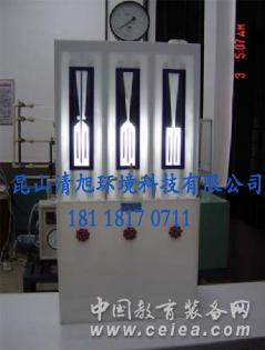 1、自循環供水系統,20米揚程泵,LED泛平面片光源,顯示屏,有機玻璃精制的文氏管模型、突縮管模型、普通閘門槽和抗空化閘門槽模型,常溫水沸騰的裝置,真空測壓機,喉道流速>18m/s,不銹鋼支架。 2、外形尺寸:550×550×1100mm |