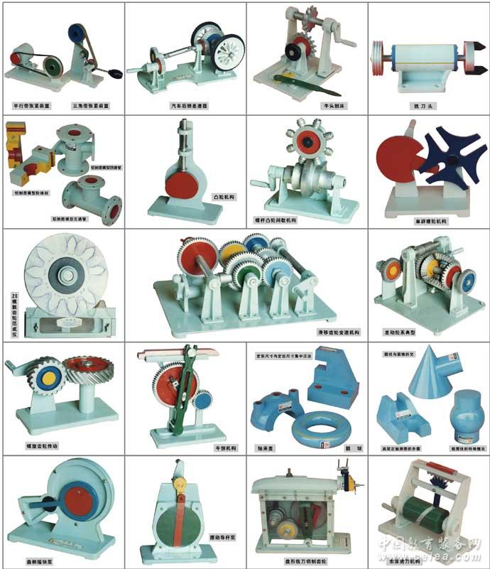 產品詳細介紹平面連桿機構(鋁制教學模型) 編號 名 稱 單價 參考尺寸 備注 1. 轉動付(典型) 320 200×150×150 全鋁制 2. 螺旋付(典型) 256 300×50×150 全鋁制 3. 球面付(典型) 432 300×120×180 全鋁制 4. 高付(典型) 336 " 全鋁制 5. 移動付(典型) 288 200×150×150 全鋁制 6. 曲柄搖桿機構 352 250×140×180 全鋁制 7. 曲柄滑塊機構 352 " 全鋁制 8. 曲柄導桿機構 352 " 全鋁制 9. 雙曲柄機構 352 " 全鋁制 10. 雙搖桿機 352 " 全鋁制 11. 回轉導桿機構 352 " 全鋁制 12. 移動導桿機構 352 " 全鋁制 13. 轉動導桿機色 368 200×140×280 全鋁制 14. 正弦機構 368 200×140×200 全鋁制 15. 正切機構 368 全鋁制 16. 平行四邊形機構 368 " 全鋁制 17. 反平行四邊形機構 432 " 18. 雙滑塊機構 448 200×140×300 全鋁制 19. 雙轉塊機構 448 " 全鋁制 20. 擺動導桿機構 368 240×140×300 全鋁制 21. 偏置心輪機構 400 " 全鋁制 22. 偏心輪機構 496 " 全鋁制 23. 斜面機構 456 200×140×300 全鋁制 24. 斜面壓榨機機構 496 " 全鋁制 25. 四桿機構運動軌跡 480 250×140×200 全鋁制 26. 畫瞬心線機構 480 " 全鋁制 27. 橫動機構 480 180×140×280 全鋁制 28. 天平機構 496 " 全鋁制 29. 定滑輪機構 516 " 全鋁制 30. 自動送料機構 616 " 全鋁制 31. 插床機構 640 " 全鋁制 32. 沖床機構 608 " 全鋁制 33. 港口起重機機構 624 180×140×300 全鋁制 34. 電爐爐門啟團機構 720 240×140×300 全鋁制 35. 慣性篩機構 864 260×140×180 全鋁制 36. 三星齒輪換向機構 912 200×140×300 全鋁制 37. 腭式破碎機機構 672 " 全鋁制 38. 汽車前輪轉向機構 576 260×140×200 全鋁制 39. 牛刨急回機構 720 260×140×280 全鋁制 40. 攪拌機機構 480 " 全鋁制 41. 機車車輪動聯動機構 620 350×140×180 全鋁制 42. 飛機起落架機構 576 240×140×300 全鋁制 43. 內燃機由柄連桿機構 720 200×180×350 全鋁制 44. 柴油機配氣機構 720 " 全鋁制 45. 鉆床工件夾緊機構 432 240×140×180 全鋁制 46. 汽輪機聯動機構 784 350×140×100 全鋁制 47. 鋼村逐步輸送機構 960 " 全鋁制 48. 偏心杠桿行程齒輪浮動機構 1760 280×140×300 全鋁制 49. 六桿機構 640 280×340×140 全鋁制 50. 空間RSSR四桿機構 1152 400×300×140 全鋁制 51. 空間曲柄搖桿機構 1010 240×240×240 全鋁制 52. 空間RSSp四桿機構 1040 " 全鋁制 53. 空間RSoS四桿機構 1152 " 全鋁制 54. 齒輪連桿機構 672 " 全鋁制 55. 急回連桿機構 864 " 全鋁制 56. 大擺角急回機構 912 " 全鋁制 57. 汽車自動翻斗 768 " 全鋁制 58. 篩沙機構 864 " 全鋁制 59. 鏟斗提升機構(連鏟車) 912 " 全鋁制 60. 柴油機模型 560 200×140×200 全鋁制 61. 汽油機模型 560 " 全鋁制 |