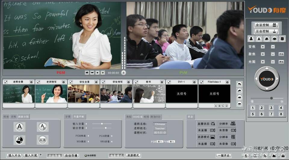 產品詳細介紹1、嵌入式架構管理錄播系統內置于錄播主機中,集視頻預監、視頻切換、云臺控制、音頻調整、直播/錄制、暫停控制、特技效果、特效字幕、LOGO校徽、直播監視等功能于一體; 2、具有單流和多流錄制功能,可支持單流多流同時錄制,產品既可以實現單流多畫面又可實現多流多畫面;并且所錄的每一路視頻文件都能單獨完整的保留,方便后期制作; 3、在錄制文件時支持實時插入片頭、片尾、字幕、LOGO�;�、教師信息、本地視頻文件等功能;支持預設多條字幕,實現課件字幕實時導入功能; 4、支持對話模式,即老師提問時,老師視頻畫面與學生視頻畫面同屏顯示。 5、支持多種特效特技功能多達40種,支持擦除、覆蓋、淡進、淡出等主流切換特效。電影模式下可選擇多種特效轉場和切換功能;資源模式下可選擇畫面分割功能; 6、多種錄播方式:支持全自動、半自動、手動錄制模式(支持鍵盤控制器操作或鼠標點擊),三種種模式可以任意切換; 7、錄制模式支持電影模式、電影加資源模式兩種。電影模式和資源模式可同時工作。錄制電影加資源模式時,資源模式在后臺工作。 8、支持多種靈活的切換策略,用戶也可以根據自己所需自定義設置多機位之間的切換策略;支持老師手動授課機鼠標或鍵盤則錄制畫面自動切換到教師機畫面;為了滿足教室不同環境可實現圖像策略的自由設定、錄播主機與攝像機的策略自由設置; 9、支持VGA鎖屏功能,在錄制電影模式課件時老師可以對VGA進行鎖屏功能,時間可以自定義設置,也可支持VGA信號一直停留在錄制畫面;支持一鍵解鎖功能,讓畫面回到老師畫面; 10、支持具有通道備份功能,各通道碼流可自定義設置;具有23路本地視頻通道功能;本地文件通道可添加mp4格式的視頻文件,支持自動或手動的切換到正在錄制的PGM畫面,并具有循環播放功能; 11、錄播主機內置WEB服務器和流媒體服務器,并具有網絡直播和遠程推送雙功能,即在進行網絡直播時可再推送一路音視頻流至廣域網服務器,用戶可直接通過瀏覽器在校園網/城域網/廣域網上進行接收觀看,很好的兼顧了本校及校際間的直播,并滿足了不同網絡帶寬用戶的需求; 12、錄播主機支持無需外加服務器就可實現少數點的直播;TS直播推流無需任何輔助設備可完成直播功能。 13、支持預約定時功能,可以根據課程安排手動導入教學課表時間。設置好后,錄播主機會根據設定的時間自動啟動錄播主機,完成錄課功能,無需人為操作; 14、錄播主機擁有低能耗、散熱快、超靜音,可長時間工作等優勢。支持錄播主機參數配置的導入導出,方便用戶統一維護和遠程升級調試; |