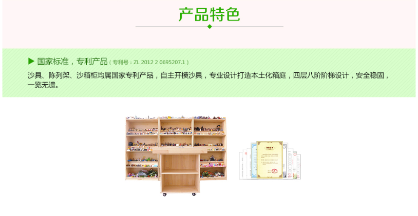 沙具、陳列架、沙箱柜均屬?lài)?guó)家專(zhuān)利產(chǎn)品自主開(kāi)模沙具,專(zhuān)業(yè)設(shè)計(jì),打造本土化箱庭,四層八階階梯設(shè)計(jì),安全穩(wěn)固,一覽無(wú)遺。