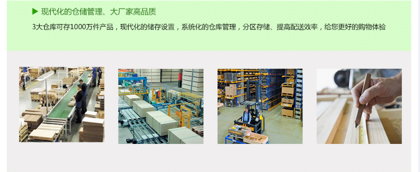 3大倉(cāng)庫(kù)可存1000萬(wàn)件產(chǎn)品,現(xiàn)代化的儲(chǔ)存設(shè)置,系統(tǒng)化的倉(cāng)庫(kù)管理,分區(qū)儲(chǔ)存,提高配送效率,給您更好的購(gòu)物體驗(yàn).
