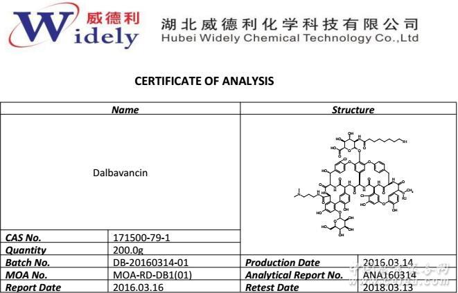 產(chǎn)品詳細(xì)介紹鹽酸達(dá)巴萬(wàn)星威德利品牌科研高純?cè)噭?br/>