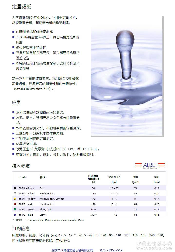 無灰濾紙(灰分約0.004%),可用于定量分析,常規重量分析,和儀器分析的樣品制備。 由精制棉絨和纖維素制成; α-纖維素含量95%以上,具備高穩定性和耐用度; 經過酸洗再中和處理; 不含礦物質和金屬離子,是金屬離子檢測的理想之選; 可完美應用于食品質量控制、飲料分析及環境監測等。 對于更為嚴苛的過濾要求,我們建議使用硬化定量濾紙,具備更好的耐濕性和化學抵抗性。 (Grade:1505-1506-1507)。 |
