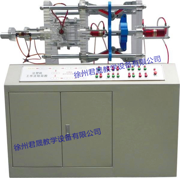 產(chǎn)品詳細(xì)介紹概述: JS-YZS型透明液壓注塑模擬成型機(jī)是將注塑機(jī)的自動(dòng)化過程進(jìn)行詳細(xì)的分解及其注塑過程中各項(xiàng)動(dòng)作進(jìn)行分項(xiàng)演示的一款現(xiàn)代化教學(xué)設(shè)備。它包括注塑機(jī)在自動(dòng)化的過程中的預(yù)塑、注膠、冷卻、開模、合模、頂出等基本動(dòng)作,詳細(xì)直觀的呈現(xiàn)出各部分的結(jié)構(gòu)及動(dòng)作原理。 主要特點(diǎn): 1. 機(jī)身及液壓閥全部采用進(jìn)口有機(jī)玻璃制作,該有機(jī)玻璃材料耐腐蝕、抗磨性能好,長久不變色演示效果逼真,柜體采用 1MM厚的SPCC冷扎板制作,堅(jiān)固美觀,表面采用中溫磷化防銹漆,靜電噴涂。 2. 特殊液壓油:本演示臺采用的液壓紅油,在演示過程中,可清晰的觀看到液壓油的流向,且增加了透明元件的美感。 3. 控制多樣化:由PLC控制,可實(shí)現(xiàn)自動(dòng)與手動(dòng)相互切換。注膠、開模、合模、頂出及模具抽芯全部都是液壓控制。 技術(shù)參數(shù): 1、 工作油液:6#液壓紅油 2、 工作壓力:約1.0MPA 3、 交流電源:單相220VAC 50HZ 4、 直流電源:12VDC 5、 演示臺尺寸(mm):1250x500x1250 6、 整機(jī)重量:約130kg 序號 名稱 規(guī)格尺寸 特 點(diǎn) 1 透明液壓注塑模擬成型機(jī) 1250×500×1250