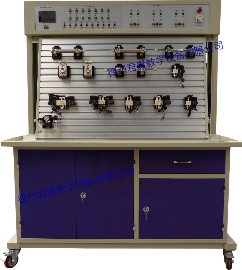 產品詳細介紹一、概述: 氣壓傳動實驗臺是根據《液壓與氣壓傳動》、《氣動控制技術》等通用教材內容要求,參考廣大師生的建議,精心設計而成。該系統除了可以進行常規的氣動基本控制回路實驗外,氣動控制實驗臺還可進行模擬氣動控制技術應用實驗、氣動技術課程設計,以及可編程序控制器 (PLC)學習及其基本應用實驗等,氣動控制實驗臺是機電完美結合的典型實驗設備。 氣動控制實驗臺應于大中專院校、技校、職業學校中的機械工程、機電一體化、自動化專業開設《液壓與氣壓傳動》、《氣動控制技術》、《 PLC可編程序控制器原理及應用》等相關課程的教學實驗,同時也可作為機、電、氣一體化的綜合實驗臺。學生通過實際操作實驗及課程設計,可以準確、形象、深入地了解、掌握氣動元件的結構、氣動回路的控制原理及設計方法等。以及掌握氣動控制實驗臺功能,控制原理及編程技巧等。 二、實驗臺主要特點 1.實驗氣動元件均裝有帶彈性插腳的底板,實驗時組裝實驗回路快捷、方便;實驗回路清晰、明了。 2.實驗電氣控制采用低壓直流24V電源;實驗回路、控制電路安全可靠。 3.電氣主控制單元采用PLC可編程序控制器控制,可與PLC微機通訊實現微機智能控制。同時,還可采用獨立的繼電器控制單元進行電氣控制,通過比較,突出PLC可編程序控制器控制的優越性,加深對PLC可編程序控制器的了解及掌握。 4.該系統是典型的機、電、氣一體化的綜合實驗設備,功能強、適用范圍廣。 基本結構組成: 氣動PLC控制實驗臺主要由實驗桌及實驗支架、氣動元器件、電氣控制器件等組成。 氣動元器件配備:空氣壓縮機,空氣過濾、減壓、油霧器三聯件,減壓閥,手動換向閥,電磁換向閥,氣控換向閥,行程閥,單向閥,節流閥、單向節流閥、快速排氣閥,或門型梭閥,單作用氣缸,雙作用氣 缸、旋轉氣缸..... 電氣控制器件:直流24V(3A)電源單元,PLC可編程序控制器(西門子S7-300),PLC電氣控制輸入單元, PLC電氣控制輸出單元,繼電器控制單元,行程開關(常閉、常開)。 主要技術參數 1.PLC可編程序控制器:PLC可編程序控制器:西門子S7-300型主機(繼電器輸出方式)。 2.直流電源:輸入AC 220V 輸出:DC 24V/3A 3.實驗臺外形尺寸:1250mm×950mm×1730mm 4.空氣壓縮機(基本配置小型機) 規格:430*210*600(mm) 電源: AC220V 功率:360W 最高壓力:1.3mp 排氣量:0.039m3/min溫度:90度 潤滑油:10#變壓機油 噪音:<65Dbca 儲氣容積:10L 凈重:21kg、 5、氣動元件: 以JELPC氣動元件為主,配置詳見附件。 氣動元件均配有鋁合金過渡底板(工程塑料),可方便、隨意地將元件安放在實驗面板(面板帶“T”溝槽形式的鋁合金型材結構)上。回路搭接采用快換接頭,拆接方便快捷。 6.電氣控制單元: 可編程序控制器(PLC);采用西門子S7-200系列, I/O口24點;繼電器輸出形式。電源電壓:AC 220V/50Hz 三、實驗項目: ① PLC控制回路實驗: 1.單作用氣缸的換向回路 2.雙作用氣缸的換向回路 3.一次壓力控制回路 4.二次壓力控制回路 5.高低壓切換回路 6.雙作用氣缸的雙向調速回路(進口調節、出口調節) 7.速度換接回路 8.緩沖回路 9.互鎖回路 10.過載保護回路 11.位置控制式單往復回路 12.壓力控制式單往復回路 13.時間控制式單往復回路 14.單雙作用缸連續往復動作回路 15.采用節流閥的同步回路 16.三缸連動回路 17.計數回路 18.延時回路 19.邏輯閥的應用回路(或邏輯) 20.雙手操作回路 ② 繼電器控制回路 汽缸緩沖回路 汽缸給進系統 雙缸動作回路 ③ 可編程序控制器(PLC)電氣控制實驗,機-電-氣一體化控制實驗: ⑴ PLC指令編程、梯形圖編程學習 ⑵ PLC編程軟件的學習與使用 ⑶ PLC與計算機的通訊、在線調試 ⑷ PLC與氣動相結合的控制實驗 ⑸ PLC指令編程實訓 4學生自行設計、組裝和擴展各種回路實驗 JS-QD1氣壓傳動實驗臺配置清單 |