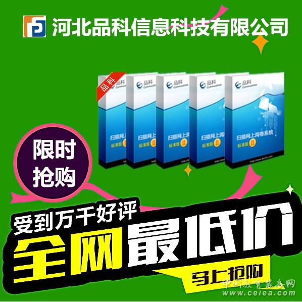 產品詳細介紹品科網上閱卷系統的研發完全是按照高考的模式而進行的,跟模式一致,評卷模式可靈活設置為雙評制、單評制等。而且為了減輕學校使用費用問題,答題卡可用品科網上閱卷系統提供的答題卡,方便簡單,印刷時,學校一體機即可勝任印刷工作,紙張要求60克以上即可。 為適應教育局組織的多校統考需要通過廣域網進行閱卷的需求,提高實效性,降低成本。品科網上閱卷互聯網閱卷方案,從而發揮出網上閱卷靈活、安全、高效的優勢。 1、降低考試費用 降低答題卡成本,品科網上閱卷系統自帶答題卡生成器,設計方便,用60克以上紙打印、速印、膠印均可準確識別,考試成本大幅降低。 2、提高閱卷效率,省時省力 閱卷過程中不必再組織試卷的裝訂、搬運、分發、保管等管理工作。 以網絡技術為依托,使評卷教師閱卷或批注只需點擊鼠標或簡單操作,加分、登分、統計由系統自動完成,大幅提高閱卷效率。 3、提高閱卷質量 系統可對任 意科目或題目進行雙評或多評設置,差錯降至為零,閱卷質量大幅提高。 4、適應高考答題形式,提高高考成績 網上閱卷系統,完全適應高考答題形式,可以為初、高中學生提供一個應對中考及高考的網上閱卷系統的試練場所,提高答題效率,降低無謂失分幾率。 5、便于數據統計分析、指導教學 閱卷完成后,系統提供了客觀題和主觀題的成績合并功能,并根據學校選定的統計指標、統計內容進行考生成績的統計分析與評價工作。 |
