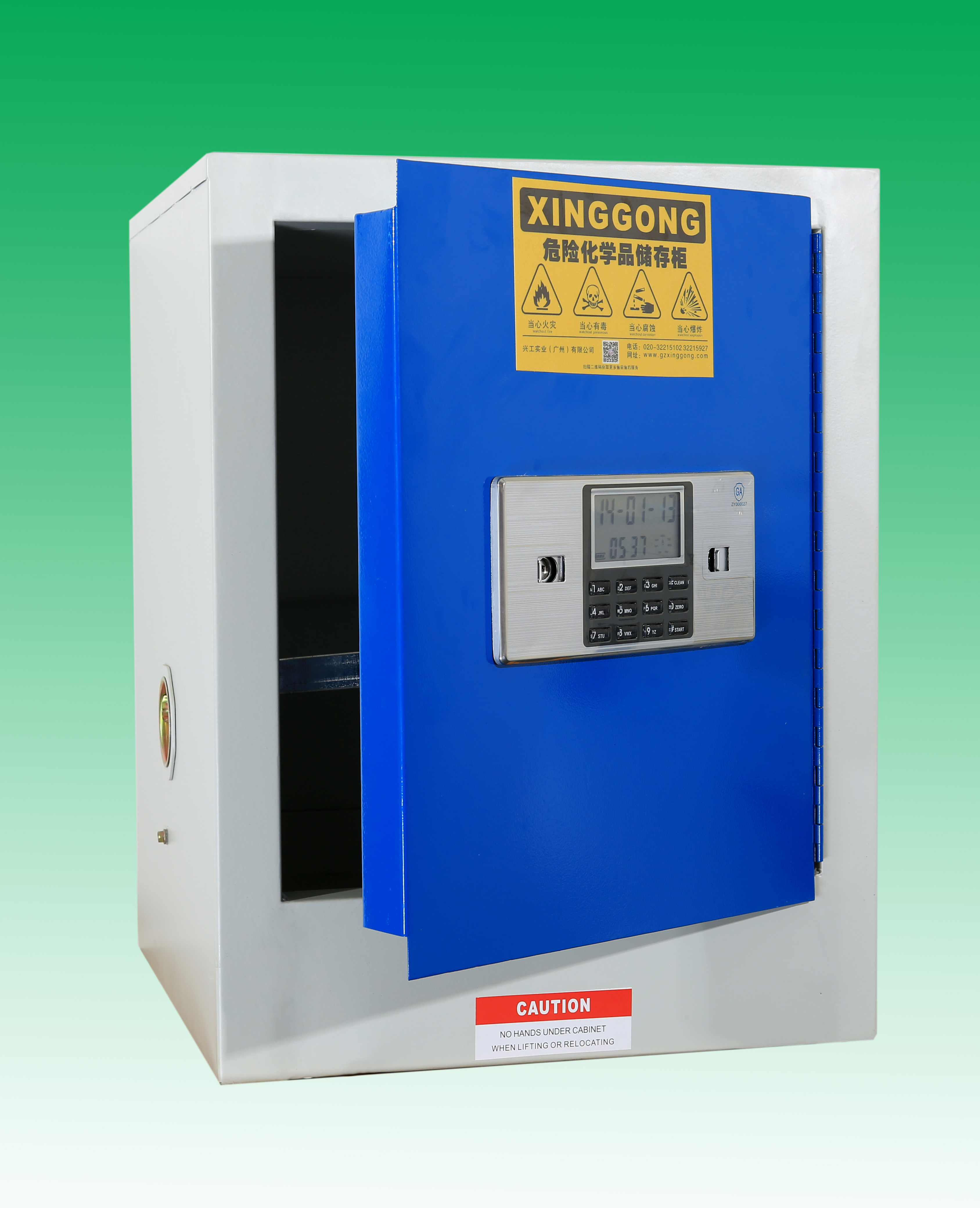 易制毒試劑柜用于存放甲苯,高錳酸鉀等易制毒的危化品的安全防護(hù)用品: 特點(diǎn): 自動(dòng)報(bào)警,當(dāng)柜體產(chǎn)生劇烈震動(dòng)或密碼連續(xù)輸錯(cuò)3 次,密碼鎖會(huì)發(fā)出轟鳴聲自動(dòng)報(bào)警,報(bào)警時(shí)間將持續(xù) 30 秒左右,如想立即解除報(bào)警,輸入正確密碼即可。 1.易制毒化學(xué)品儲(chǔ)存柜全部采用雙層鋼板構(gòu)造,耐沖擊;厚度1.20mm的優(yōu)質(zhì)鋼板經(jīng)過點(diǎn)焊接,使用壽命更長(zhǎng),強(qiáng)度更好; 2.柜身全部酸洗磷化,環(huán)氧樹脂噴涂處理,可以耐受一定酸堿腐蝕; 3.配有電子密碼鎖和機(jī)械鎖雙鎖(另有指紋鎖,IC卡鎖可選); 4.獨(dú)特的耐腐蝕層板設(shè)計(jì),有5厘米高的防漏液槽使意外流出的液體不外溢; 5.層板可上下自由調(diào)節(jié)方便存放大小不一的危化品; 6.可選溫度控制系統(tǒng),恒溫系統(tǒng),可選柜身全耐腐蝕材質(zhì)(請(qǐng)查看我公司恒溫毒試劑柜或耐強(qiáng)酸堿毒試劑柜)。 功能: 一:符合易制毒安全存儲(chǔ)要求雙人雙鎖管理。 二:保護(hù)毒物安全,免受盜竊丟失危害。 三:可選控溫功能,保護(hù)毒物安全。 安全建議: 您可以為您的安全儲(chǔ)存柜選配通風(fēng)裝置或過濾裝置,可以將有害氣體及時(shí)過濾或者排出室外,保護(hù)工作人員安全! 易制毒試劑柜選型表:門板顏色可選:灰色 ,藍(lán) ,寶石藍(lán) : 產(chǎn)品型號(hào) 容量/規(guī)范 產(chǎn)品規(guī)格(W*D*H) XGD12F 12加侖,單門,環(huán)氧樹脂噴涂,電子密碼鎖+機(jī)械鎖580mmW*460mmD*890mmH (獨(dú)有的耐腐蝕的PP槽型層板) XGD16F 16加侖,環(huán)氧樹脂噴涂,電子密碼鎖+機(jī)械鎖 580mmW*460mmD*1120mmH (獨(dú)有的耐腐蝕的PP槽型層板) XGD22F 22加侖,環(huán)氧樹脂噴涂,電子密碼鎖+機(jī)械鎖 890mmW*560mmD*890mmH (獨(dú)有的耐腐蝕的PP槽型層板) XGD24F 24加侖,環(huán)氧樹脂噴涂,電子密碼鎖+機(jī)械鎖 1090mmW*300mmD*1120mmH (獨(dú)有的耐腐蝕的PP槽型層板) XGD300F 30加侖,環(huán)氧樹脂噴涂,電子密碼鎖+機(jī)械鎖 1090mmW*460mmD*1120mmH (獨(dú)有的耐腐蝕的PP槽型層板) XGD450F 45加侖,環(huán)氧樹脂噴涂,電子密碼鎖+機(jī)械鎖 1090mmW*460mmD*1650mmH (獨(dú)有的耐腐蝕的PP槽型層板) XGD600F 60加侖,環(huán)氧樹脂噴涂,電子密碼鎖+機(jī)械鎖 900mmW*900mmD*1650mmH (獨(dú)有的耐腐蝕的PP槽型層板) XGD900F 90加侖,環(huán)氧樹脂噴涂,電子密碼鎖+機(jī)械鎖 1090mmW*900mmD*1650mmH (獨(dú)有的耐腐蝕的PP槽型層板) |