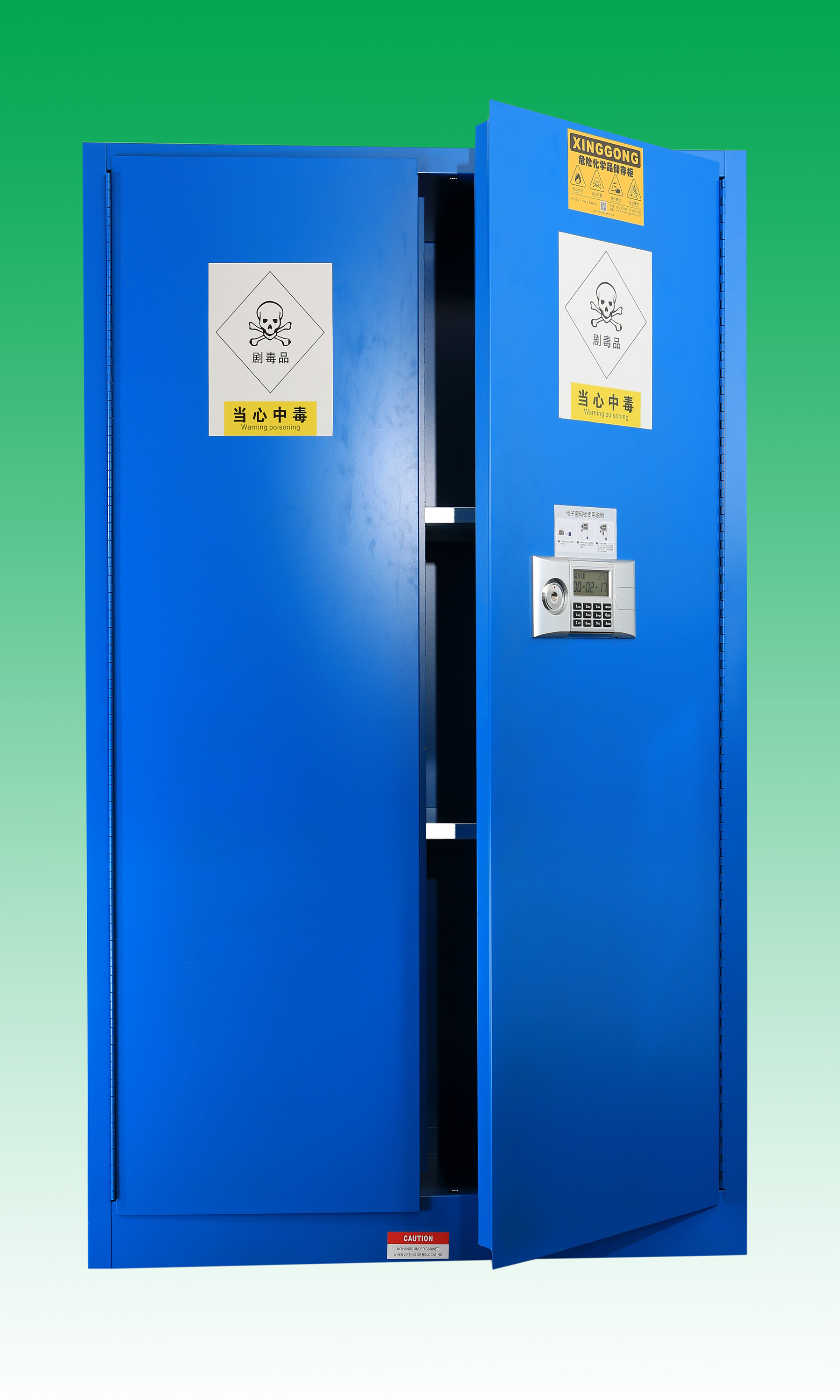危險(xiǎn)化學(xué)品儲(chǔ)存柜用于存放甲苯,高錳酸鉀等易制毒的危化品的安全防護(hù)用品: 特點(diǎn): 自動(dòng)報(bào)警,當(dāng)柜體產(chǎn)生劇烈震動(dòng)或密碼連續(xù)輸錯(cuò)3 次,密碼鎖會(huì)發(fā)出轟鳴聲自動(dòng)報(bào)警,報(bào)警時(shí)間將持續(xù) 30 秒左右,如想立即解除報(bào)警,輸入正確密碼即可。 1.易制毒化學(xué)品儲(chǔ)存柜全部采用雙層鋼板構(gòu)造,耐沖擊;厚度1.20mm的優(yōu)質(zhì)鋼板經(jīng)過點(diǎn)焊接,使用壽命更長,強(qiáng)度更好; 2.柜身全部酸洗磷化,環(huán)氧樹脂噴涂處理,可以耐受一定酸堿腐蝕; 3.配有電子密碼鎖和機(jī)械鎖雙鎖(另有指紋鎖,IC卡鎖可選); 4.獨(dú)特的耐腐蝕層板設(shè)計(jì),有5厘米高的防漏液槽使意外流出的液體不外溢; 5.層板可上下自由調(diào)節(jié)方便存放大小不一的危化品; 6.可選溫度控制系統(tǒng),恒溫系統(tǒng),可選柜身全耐腐蝕材質(zhì)(請查看我公司恒溫毒試劑柜或耐強(qiáng)酸堿毒試劑柜)。 功能: 一:符合易制毒安全存儲(chǔ)要求雙人雙鎖管理。 二:保護(hù)毒物安全,免受盜竊丟失危害。 三:可選控溫功能,保護(hù)毒物安全。 安全建議: 您可以為您的安全儲(chǔ)存柜選配通風(fēng)裝置或過濾裝置,可以將有害氣體及時(shí)過濾或者排出室外,保護(hù)工作人員安全! 門板顏色可選:灰色 ,*藍(lán) ,寶石藍(lán) : 產(chǎn)品名稱 容量/規(guī)范 產(chǎn)品規(guī)格(W*D*H) 危險(xiǎn)化學(xué)品儲(chǔ)存柜 12加侖,單門,環(huán)氧樹脂噴涂,電子密碼鎖+機(jī)械鎖580mmW*460mmD*890mmH (獨(dú)有的耐腐蝕的PP槽型層板) 危險(xiǎn)化學(xué)品儲(chǔ)存柜 16加侖,環(huán)氧樹脂噴涂,電子密碼鎖+機(jī)械鎖 580mmW*460mmD*1120mmH (獨(dú)有的耐腐蝕的PP槽型層板) 危險(xiǎn)化學(xué)品儲(chǔ)存柜 22加侖,環(huán)氧樹脂噴涂,電子密碼鎖+機(jī)械鎖 890mmW*560mmD*890mmH (獨(dú)有的耐腐蝕的PP槽型層板) 危險(xiǎn)化學(xué)品儲(chǔ)存柜 24加侖,環(huán)氧樹脂噴涂,電子密碼鎖+機(jī)械鎖 1090mmW*300mmD*1120mmH (獨(dú)有的耐腐蝕的PP槽型層板) 危險(xiǎn)化學(xué)品儲(chǔ)存柜 30加侖,環(huán)氧樹脂噴涂,電子密碼鎖+機(jī)械鎖 1090mmW*460mmD*1120mmH (獨(dú)有的耐腐蝕的PP槽型層板) 危險(xiǎn)化學(xué)品儲(chǔ)存柜 45加侖,環(huán)氧樹脂噴涂,電子密碼鎖+機(jī)械鎖 1090mmW*460mmD*1650mmH (獨(dú)有的耐腐蝕的PP槽型層板) 危險(xiǎn)化學(xué)品儲(chǔ)存柜 60加侖,環(huán)氧樹脂噴涂,電子密碼鎖+機(jī)械鎖 900mmW*900mmD*1650mmH (獨(dú)有的耐腐蝕的PP槽型層板) 危險(xiǎn)化學(xué)品儲(chǔ)存柜 90加侖,環(huán)氧樹脂噴涂,電子密碼鎖+機(jī)械鎖 1090mmW*900mmD*1650mmH (獨(dú)有的耐腐蝕的PP槽型層板) |