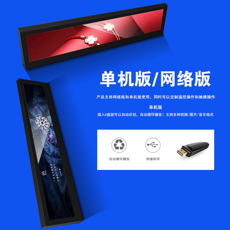 產品詳細介紹● 超薄超輕設計,使用方便、美觀 ● 高分辯率、高對比度、高亮度、極大提高畫面層次感,能更好表現細節 ● 具有自動消除殘影功能,保護液晶屏的長期使用 ● 具有黑電平延伸自適應功能,增強圖象景深層次感 ● 采用專業級液晶屏,視頻圖像更加亮麗,立體感更強 ● 16.7M色,畫面更加自然,細膩畫面真正無拖尾 ●具有智能溫控環保靜音 可靠性高,穩定性好,特別適合在惡劣的環境中工作 ●超長壽命,7*24小時不間斷工作,可達6萬小時以上 ●支持橫豎分屏 1 支持網頁/Flash播放,借助網頁/Flash的觸摸互動功能,可以實現觸摸互動平臺應用; 2 輸入功能: 1) 支持電阻、電容、紅外、聲波等多種觸摸屏; 2) 支持遙控輸入; 3)支持USB鼠標/鍵盤輸入; 8 輸出功能: 1) 支持開機橫屏和豎屏兩種顯示模式; 2) 支持LVDS點屏輸出, 3)支持HDMI/VGA/AV開機輸出自由切換; 9 多存儲介質支持功能:可支持SD卡,USB盤,SATA硬盤。 3 多國語言:支持中文、英文等絕大多數國家語言,TTF矢量字庫支持顯失真 4 定時開關機:利于節省能源,并且延長其使用壽命;設定開關機時間后,整個系統在開機時間段自動啟動。在關機時間段自動停止運行進入關機狀態。關機狀態下,設備不響應外部操作,不輸出任何音視頻信號; 5 滾動字幕:播放視頻廣告的同時,在屏幕下方顯示預先設定的文字信息; 6 時鐘顯示:內置時鐘IC,可聯網自動 更新時間信息,自動校正系統時間; 7 天氣預報:可聯網實時自動更新天氣預報信息; 8 分屏播放:支持1080P視頻、圖片、字幕、時間、天氣預報等元素自由分屏功能; 9 強大的網絡支持:支持有線/Wifi/3G接入; 10 支持多款B/S架構廣告發布軟件,基于強大的后臺服務器管理軟件支撐,可以在線設置廣告機參數,在線制作播放列表并下發,實時/定時下載服務器廣告片源,下載完成自動播放。 |