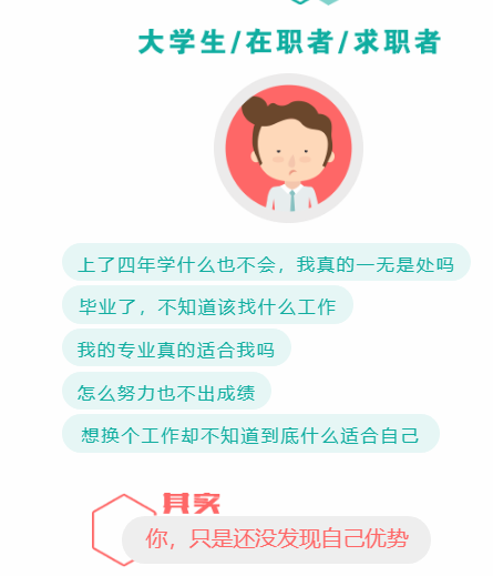 產(chǎn)品詳細介紹蛙人網(wǎng)《大學(xué)生版測評系統(tǒng)》: 它是三套國際頂尖心理學(xué)理論的完美結(jié)合:馬斯洛需求理論、蓋洛普優(yōu)勢定律、MBTI人格理論。 它能幫助你發(fā)現(xiàn)你的優(yōu)勢,找到你的職業(yè)定位 它會對你的工作,生活和家庭婚姻帶來積極的影響 幫你發(fā)現(xiàn)自身的優(yōu)勢,更容易找到適合的工作,發(fā)揮優(yōu)勢,最大限度的體現(xiàn)自身價值,了解自己,理解他人人際關(guān)系更和諧。 有意向者可聯(lián)系:4000600062 |
