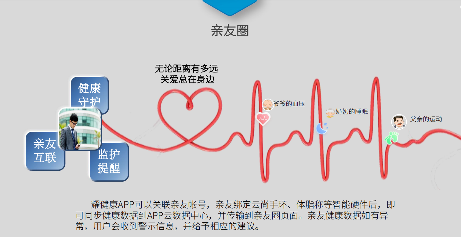 基于大健康未來的發展前景,浙江云尚健康科技股份有限公司(以下統稱為“云尚互聯”)旗下健康智能應用APP—耀健康應用而生。耀健康APP,集結全國頂級醫療資源,依托智能大數據精準算法,全方位解讀個人健康數據,為用戶定制個性化健康管理方案、差別化運動處方、平衡亞健康計劃。