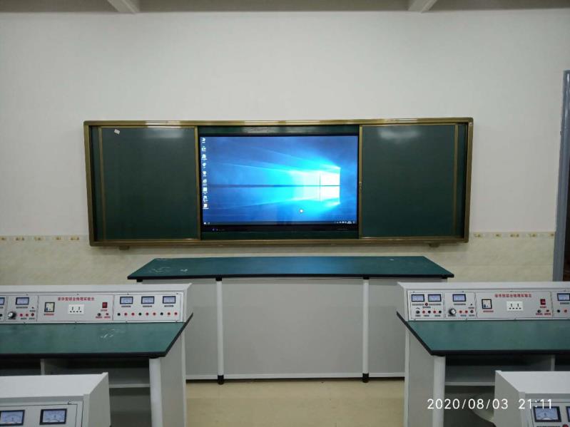 產品詳細介紹 推拉黑板又稱復合黑板是近兩年來各地學校比較流行的新式書寫板,推拉黑板表面上和普通教學黑板用法是一樣的,但推開擋在外面的兩塊板面后,就出現了交互式電子白板或液晶觸摸電視,即可實現電教,推拉黑板的最大作用就在于此:使傳統教學與現代教學相結合---書寫板與電子白板之間隨意切換,安全方便。