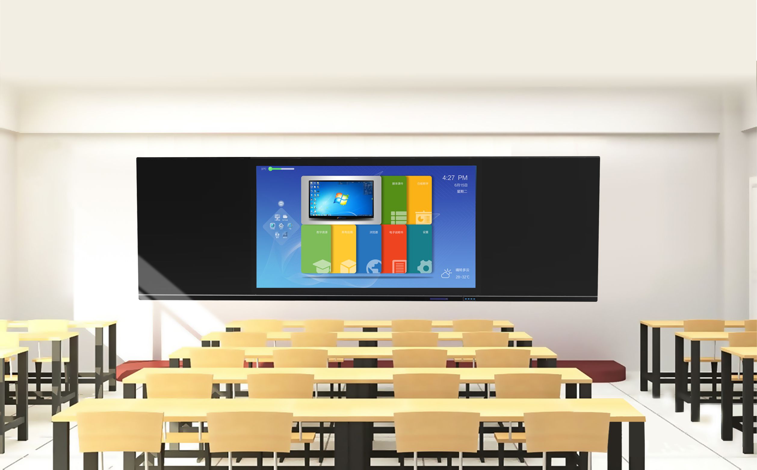 產品詳細介紹 產品特性 1.超高清智能顯示防眩光 液晶面板超高清4k顯示,表面防眩光玻璃+納米涂層,超大可視角度,書寫無視差,有效過濾有害光線。 2.智能雙系統 接口多元化 具有常用的 HDMI、VGA、耳機、MIC、TV 等常用端口,同時提供了HDMI2.0、USB3.0等多媒輸入輸出端口;支持Intel/OPS規范筆記本平臺OPS電腦無縫接入,可實現 Android 與 Windows 系多系統間的無縫互動切換。 3.智能識別完美共享 智能手勢熄屏,一鍵無線投屏智能權限操作模式,顯示窗口一鍵下移,方便老師教學操作,Windows與Android雙系統同時聯網,實現共享。 4.多點電容觸控技術 采用國內最先進的電容觸控技術,手指輕觸式多點(不小于10點觸控)互動體驗,支持多種手勢切換、縮放和旋轉功能。 5.先進音箱擴聲系統 采用先進的聲學處理技術,自適應音效匹配,無對頻、多套使用時串頻現象。 6.全貼合工藝 插拔式電腦 無水汽、水霧產生,灰塵或水跡不影響觸控;插拔式OPS結構設計,厚度行業最薄30mm。