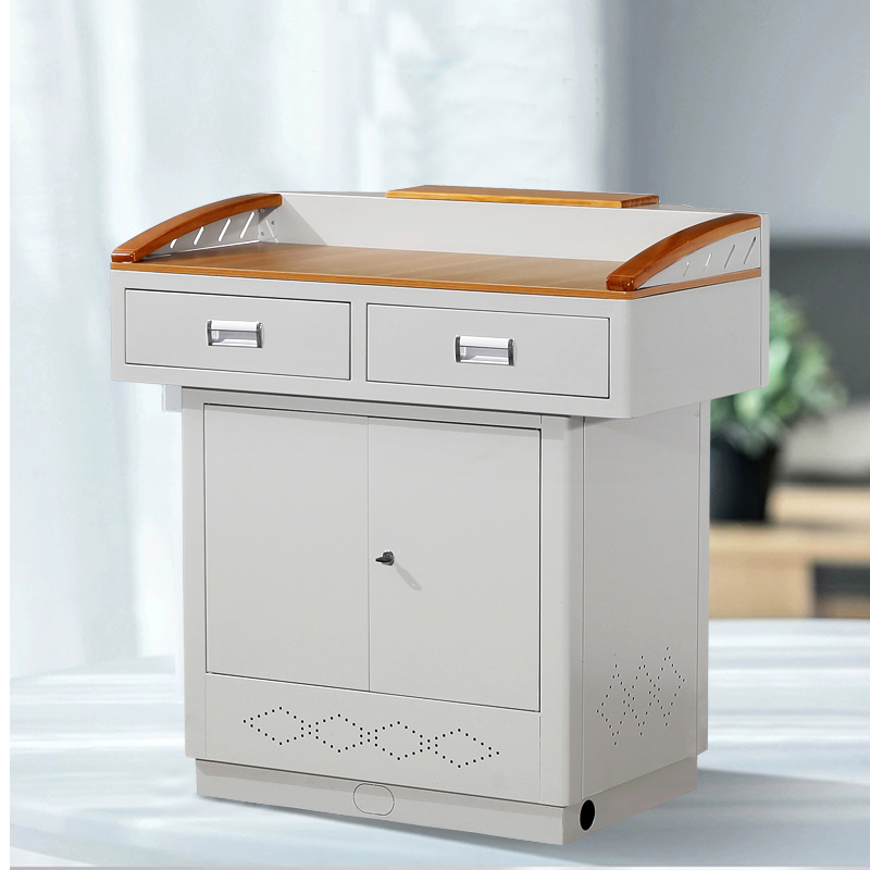 產品詳細介紹1. 外形尺寸:總體尺寸1000*600*1000mm; 2. 上體部分:長度1000mm,寬度600mm,高度230mm; 3. 下體部分:長度750mm,寬度520mm,高度760mm; 4. 底座部分:長度710mm,寬度480mm,高度60mm。 2.講臺桌面采用平面設計,可以放置不同型號筆記本電腦,桌面四周半包圍結構,有效防止物品滑落; 3.講臺前面設置并排兩個隱藏式抽拉儲物盒(長*寬*高:445*260*125mm),可放置筆記本電腦、鍵盤鼠標、板擦、粉筆等教學用具; 4.講臺扶手,背板采用高檔橡木制成,表面噴高檔防滑漆,使用起來光滑度高,桌面顏色為木紋色,使整個講臺看起來美觀大方; 5.整體沖壓成型,整體結構緊湊,空間設計合理; 6.講臺下柜前后門均可打開,前門為對開門,方便放設備,后門為抽拉門,節省空間,整個下柜可作為儲物柜使用; 7.全部的加工件均采用模具成型,激光切加工而成、配合優良的焊接工藝,保障尺寸精度及各部件一致性,保證安裝的方便快捷。 8,整個講臺采用上下分體,拼裝組成,大大的減少了運輸成本。 |