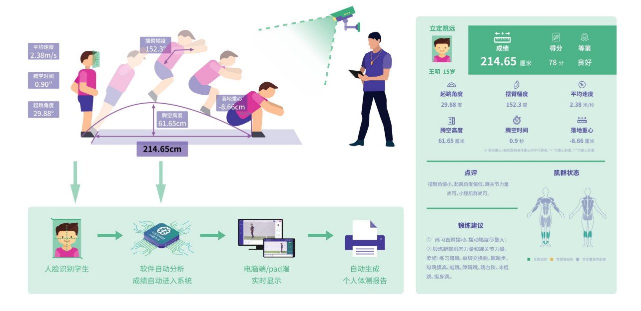 產(chǎn)品詳細(xì)介紹1.幫助學(xué)生體質(zhì)健康素質(zhì)達(dá)到全國領(lǐng)先水平,運(yùn)用人工智能技術(shù),幫助體育教師發(fā)現(xiàn)問題,總結(jié)問題,提煉方法,從而全面提升學(xué)生體質(zhì)健康素質(zhì)。 2.提高學(xué)校體育學(xué)科智慧化水平,利用人工智能技術(shù)達(dá)到運(yùn)動(dòng)過程中,人機(jī)交互。 3.提高區(qū)域,學(xué)校體育學(xué)科的科研能力,通過大數(shù)據(jù)建立每個(gè)學(xué)生可追溯性成長檔案 4.促進(jìn)學(xué)校體育教育的更加公平公正公開,建設(shè)以視頻分析為核心技術(shù)的智能體育系統(tǒng),打造標(biāo)準(zhǔn)化自動(dòng)化精準(zhǔn)測(cè)量。 5.更好的開展學(xué)生校內(nèi)訓(xùn)練活動(dòng),更好的培養(yǎng)學(xué)生對(duì)體育的興趣。 6.構(gòu)建覆蓋區(qū)域的智能化、數(shù)字化、和個(gè)性化的學(xué)校體育教學(xué)環(huán)境。 |