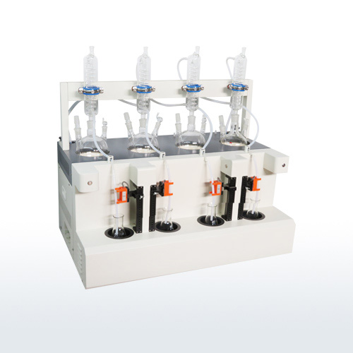 在食品類等蒸餾項目中,有一些檢測項目是比較特殊的,需要對收集的餾出液進行冰浴接收,比如檢測白酒中的酒精度、食品中的N-亞硝胺等。蒸餾過程比較復雜,同時在接收端對收集的餾出液進行冰浴接收,防止待測液體的有機成份二次揮發。目前,國內多數實驗室均采用純手工方式進行此類項目的實驗操作,冷浴時多采用冰塊或簡單的冰水混合物處理,但時間長了失去效果需要再重新更換。