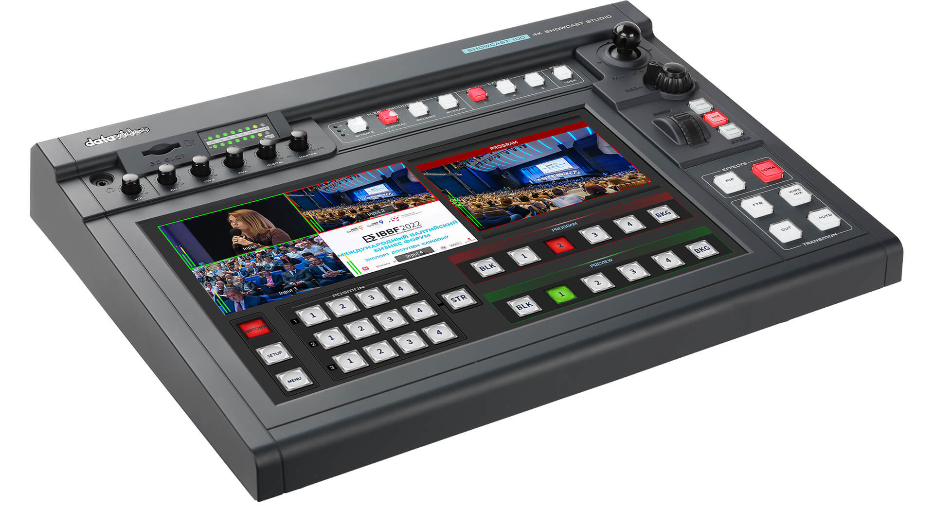 另一種則是在直播時,直接在 SHOWCAST 100 的網絡設置界面鍵入主標題字幕,在網絡直播輸出時直接顯示于畫面中,并同時錄制于 SD 卡上。 若同時使用 Luma key 字幕與直播主標題字幕時,選用 SD 卡錄制,即可同時錄下兩組字幕。 Luma key 字幕功能 Luma key 亮度鍵, 對亮暗對比分明的視頻或圖像進行處理,可以制作出字幕、圖片前景等效果。SHOWCAST 100的luma鍵功能是專為徽標(LOGO)、文本和動畫圖像設計。 直播主標題字幕功能 在直播時,可以直接在直播畫面中疊加文字或 logo、圖片。并可調整文字的尺寸、顏色、字框,及文字與圖片在畫面中呈現的位置。 手拍唱詞功能可做新聞直播 事先準備好的字幕文稿,可通過News 新聞字幕的功能,通過敲擊控制鍵盤上的空格鍵,實時在直播中逐行顯示旁白字幕。 可調整文字大小、色彩、邊框等,突出標題主旨 調整文字效果,讓標題更加明顯,為觀眾傳達清晰的主旨。使用News 新聞字幕的功能,只需點擊鍵盤上的空格鍵即可實時播放字幕。 多功能編碼直播 內置雙平臺網絡直播編碼功能,功能豐富、精彩無限! 可單獨直播、錄像、或同時直播并錄像。并可根據帶寬需要調整高、中、低碼率。 更可一鍵進行豎屏直播,滿足手機直播觀看需求,用戶無需調整手機擺放方向,即可直接觀看直播的視頻。 DvCloud 與 SRT DvCloud 是 Datavideo 自主研發的專業直播推流平臺。登錄后,您可在 DvCloud 創建并管理所有的直播頻道。無限時間長度,可按需求將節目直播推流⾄多達25個平臺。更棒的是,您可以同時自動將視頻錄制留存于云端空間,便于下載或備份。 SHOWCAST 100 結合 SRT 推流協議和 DvCloud,架構了⼀個低延遲、安全可靠的 SRT 直播⼯作流程。