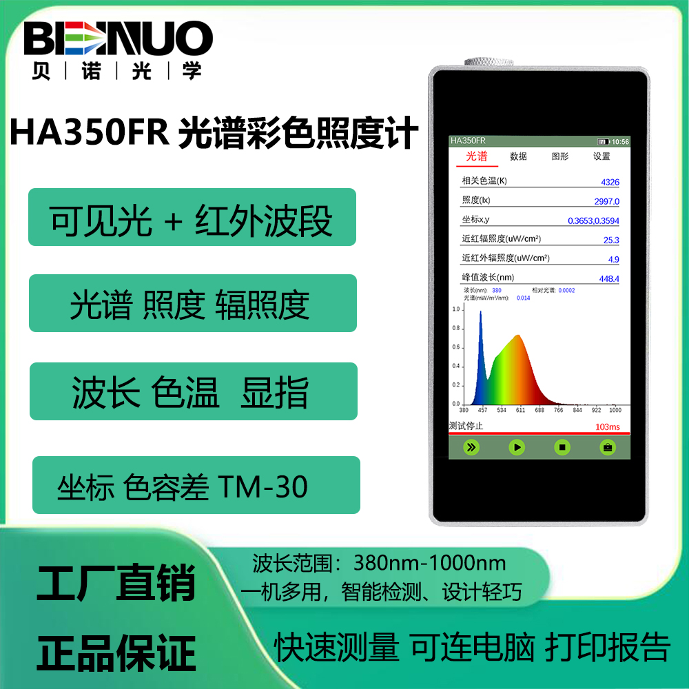產品詳細介紹波長范圍:380nm-1000nm高精度快速輻射計,覆蓋紅外LED
