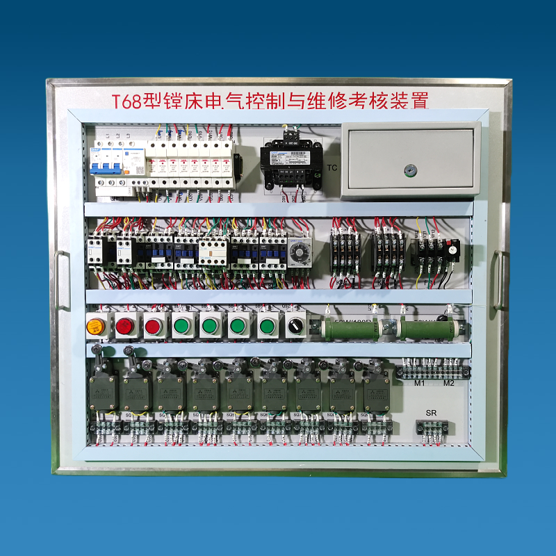 箱上提供時控系統(tǒng),箱上內(nèi)置故障箱,設有故障開關,有正面開門的暗鎖。箱上所提供的器件為國內(nèi)知名品牌,且滿足T68鏜床電路的實驗考核需要。