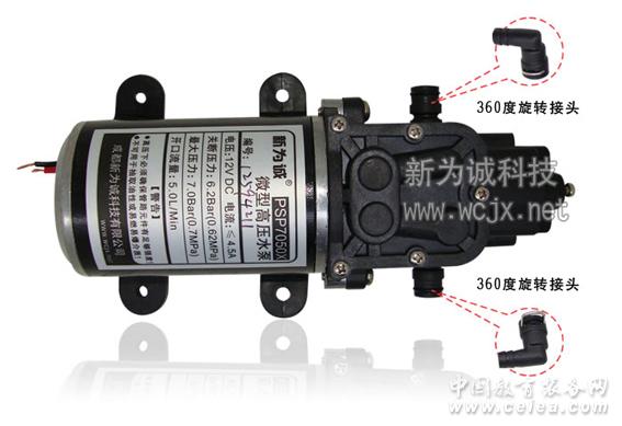 產(chǎn)品詳細(xì)介紹微型水泵,微型高壓水泵,12V直流水泵,24V直流水泵,自吸水泵,隔膜水泵 24V直流水泵 新為誠品牌--自帶泄壓、過壓雙保護(hù)開關(guān)PSP系列 型號:PSP7050X 壓力:7公斤 流量:5L/Min 電壓:直流12V(24V),可接車載電瓶 1.主要特點:體積小、重量輕(1.2kg),壓力高(最大可穩(wěn)定在7公斤工作),流量大(5L/MIN),低噪音。 2.泵自帶過壓/泄壓雙保護(hù)功能。 (過壓保護(hù):輸出壓力超過泵的壓力保護(hù)開關(guān)閥值時,自動停機(jī)保護(hù);直到壓力降到低于閥值后才重新啟動; 泄壓保護(hù):大于設(shè)定壓力的多余壓力會自動被卸掉,讓新泵為穩(wěn)定工作誠在設(shè)定壓力,不會自動停機(jī)。) 3.泵體自帶外徑12mm軟管接頭,額外贈送360度旋轉(zhuǎn)寶塔接頭2個(外徑10mm),方便連接不同內(nèi)徑軟管! 4.自吸能力強(qiáng),自吸高達(dá)2.5米,進(jìn)出水口自帶密封圈,保證自吸及不漏水。 5.用途:性價比超高,可廣泛用于水轉(zhuǎn)移、水循環(huán)、噴霧、沖洗等用途。 6.對象:水處理、液體采樣,科研,儀器儀表,化工分析,醫(yī)療保健,醫(yī)藥衛(wèi)生,生物工程,自動控制,環(huán)保等眾多領(lǐng)域的客戶。 “新為誠”微型泵,產(chǎn)品質(zhì)保一年,并為您提供專業(yè)的售前咨詢及完善的售后服務(wù)。更多詳細(xì)參數(shù)請訪問【成都新為誠科技有限公司】網(wǎng)站: http://www.wcjx.net