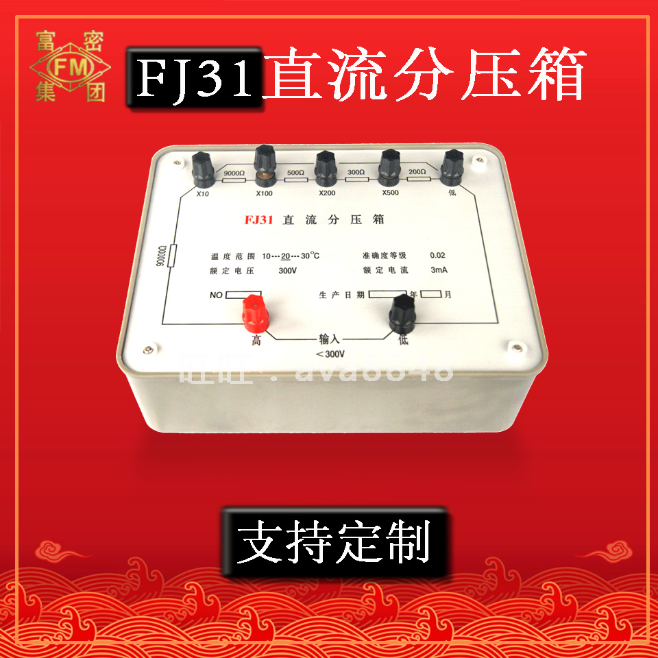 分壓箱兩輸入端固定電阻為十萬歐姆,額定輸入電壓300V,額定電流為3mA。通過多只電阻元件構成串聯電路,采用電阻分壓原理,在不同倍率端獲得不同的電壓倍率。 如在×10倍率: 因此,直流電位差計“未知”端接“×10”倍率時,就可以將量限提高10倍。 本分壓箱采用溫度系數小的金屬電阻線制成線繞電阻,并且線徑基本一致,以減小分壓箱在工作時自熱對倍率精度的影響。 四、注 意 事 項 1、在測量未知電阻時應先用萬用表進行粗測,以便根據直流電位差計量程選擇合適的倍率。 2、當用萬用表粗測,被測電壓高于36V時,應先設法切斷被測電壓源,等輸入端引線及電位差計引線全部接好后,再接通被測電壓。 3、儀器應放在相對濕度<80%的室內,空氣中不應含有腐蝕性氣體。儀器應保持清潔,避免陽光曝曬。 4、儀器每年應計量一次,以保證儀器準確性。 5、在用戶遵守保管和使用規則的條件下,12個月內因產品質量不良而發生損壞或不能正常工作時,制造廠應無償地為用戶修理或更換零部件。本廠也可保修期延長為一年,一年后本廠也可修理,零件費用戶承擔。 6、因鐵路運輸問題造成損失,由制造廠與保險公司負責,用戶不承擔損失。 五、客戶自己維修注意事項 1、注意線路不焊接錯位置,另外,不要產生假焊,焊接時需熟練人焊接,否則產生假焊導致儀器不能正常使用。這時用戶找自己錯誤。 2、如FJ31產生問題,注意別拆動儀器就不會有問題產生,如拆動后產生不能正常使用,這時查一查,測量一下電阻可能碰斷引起。本廠可以郵寄電阻給客戶。 3、不管任何方面引起產生FJ31不好使用,最好請用戶打電話與本詢問情況清楚,這樣便于雙方配合討論好解決問題快。 |