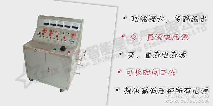 產品詳細介紹ZGK-Ⅱ 高低壓開關柜電源試驗臺閱讀次數:6878GB/T16927.1~2-1997 《高電壓試驗技術》ZGK-Ⅱ 高低壓開關柜電源試驗臺 使用手冊.pdfZGK-Ⅱ 高低壓開關柜電源試驗臺 技術規范書.pdf (注意:右鍵目標另存為下載)開關柜通電試驗臺、高低壓通電試驗臺、電源試驗臺、交直流電源箱、高低壓開關測試臺、高低壓開關臺電源、高低壓開關柜電源試驗臺ZGK-II高低壓開關柜通電試驗臺用于高低壓開關柜生產廠家對所生產的高低壓開關柜進行出廠前的各項通電試驗。它能提供各種交、直流電源,便于對開關柜的檢測,提高工作效率。 操作簡單,方便使用。 功能強大,多路輸出。 輸入電源:三相四線AC 380V 輸出電壓及電流: 三相AC100V輸出 (固定值)一組 三相AC 0 – 10A輸出〈100V,可調值一組 單相直流DC12V、24V、36V、110V、200V直流固定輸出一組 交流操作電壓輸出 AC 0~400V, 220V時,電流小于10A 直流操作電壓輸出 DC 0~260V一組 單相AC220V輸出(固定值,插座形式)二組 三相AC380V輸出(固定值,接線柱) 一組 合閘控制接點5、8分閘控制接點6、7