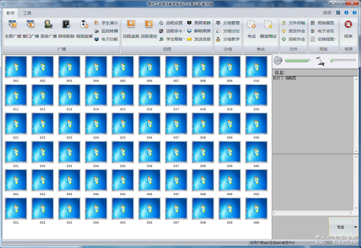 安裝 『育林衛(wèi)多媒體教學(xué)系統(tǒng)V7.0』 的 Console 端程序,讓教師在 Console 端電腦, 即可透過網(wǎng)絡(luò),針對單一/部分/全部的 Client 端電腦, 執(zhí)行 屏幕廣播、語音廣播、隨堂測試、分組教學(xué)等功能,以方便教師的教學(xué)工作。