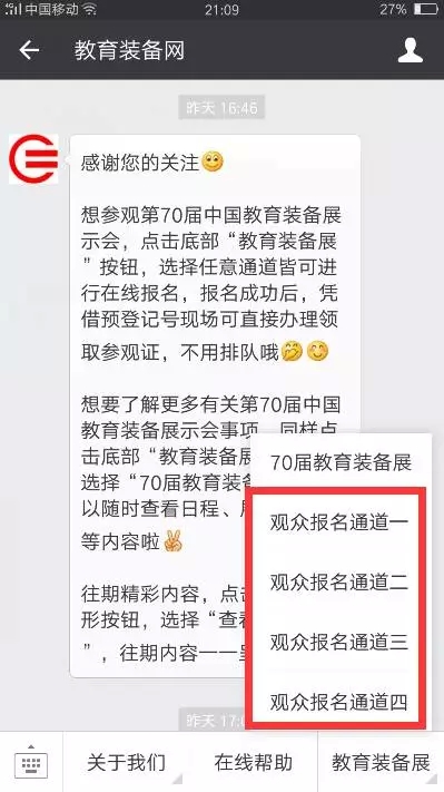 一、通過官方微信公眾服務號“教育裝備網”進行預報名。