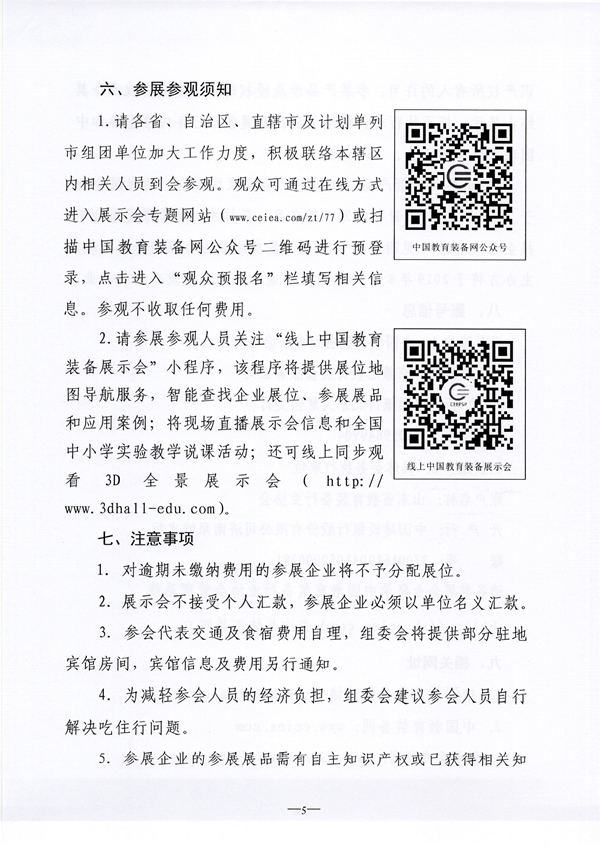 1.請(qǐng)各省、自治區(qū)、直轄市及計(jì)劃單列市組團(tuán)單位加大工作力度,積極聯(lián)絡(luò)本轄區(qū)內(nèi)相關(guān)人員到會(huì)參觀。觀眾可通過在線方式進(jìn)入展示會(huì)專題網(wǎng)站(m.0fd76bnv.cn/zt/77)或掃描中國教育裝備網(wǎng)公眾號(hào)二維碼進(jìn)行預(yù)登錄,點(diǎn)擊進(jìn)入“觀眾預(yù)報(bào)名”欄填寫相關(guān)信息。參觀不收取任何費(fèi)用。