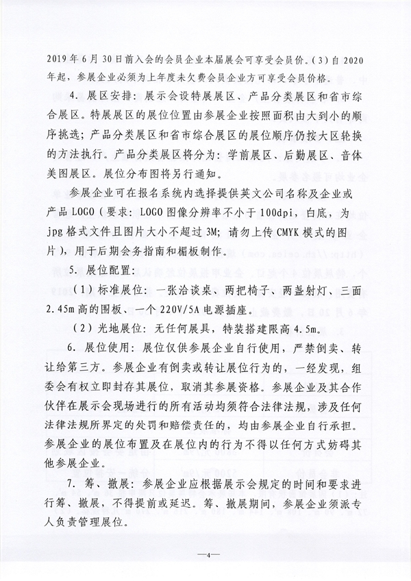 注:(1)因展館面積有限,本屆展示會(huì)特展展位只限申報(bào)36m2、54m2、72m2、90m2、108m2、144m2、180m2、216m2、270m2幾種規(guī)格。(2)2019年6月30日前入會(huì)的會(huì)員企業(yè)本屆展會(huì)可享受會(huì)員價(jià)。(3)自2020年起,參展企業(yè)必須為上年度未欠費(fèi)會(huì)員企業(yè)方可享受會(huì)員價(jià)格。