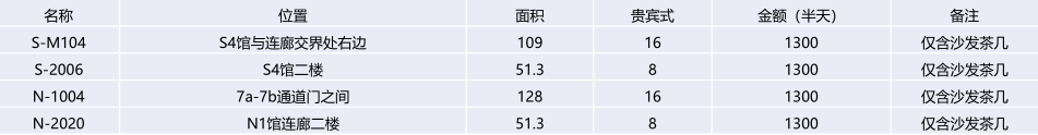 注:以上價格僅包括租賃會議室場地費,其他的各類設備(如:投影儀)費用需現場另行支付。