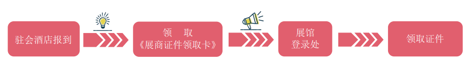 3. 參展商到展會駐會酒店廈門國際會議中心酒店(福建省廈門市思明區環島東路1697號)聯絡員房間(具體報到房間見酒店大堂公示)領取《展商證件領取卡》,再到廈門國際會展中心展館廣場入口的登錄處換取參展商證:一個展位配2個參展商證。